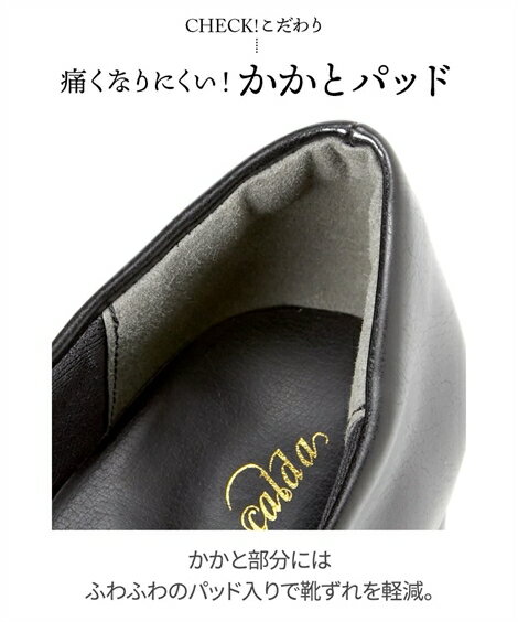 制菌・消臭効果のあるバクテシャット中敷きや内側メッシュ、かかとパッド、立体クッションと、長時間快適に履ける工夫がいっぱいのお仕事パンプスです。