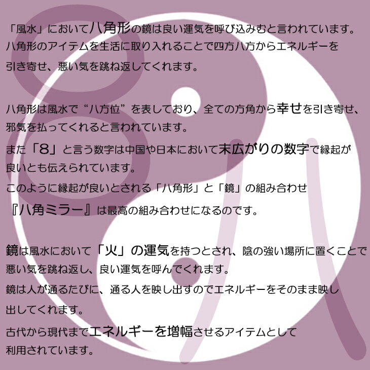 幸運を呼び込む八角ミラー3点セット 「風水」において八角形の鏡は良い運気を呼び込みむと言われています。