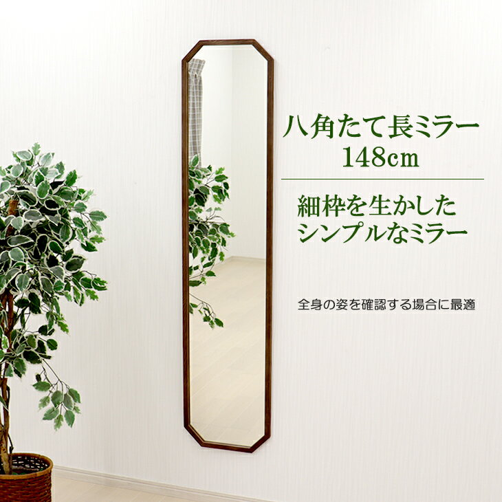 八角たて長ミラー148cm 細枠を生かしたシンプルなミラー 全身の姿を確認する場合に最適 八角たて長ミラー120cm 細枠を生かしたシンプルなミラー 顔から下半身・ひざ程度を確認する場合に最適 八角正方形ミラー33.5cm 細枠を生かしたシンプルなミラー 顔から首もとを確認する場合に最適シンプルなデザインですが、フレームに天然木を使用しているため、木目が美しく高級感を感じられます。