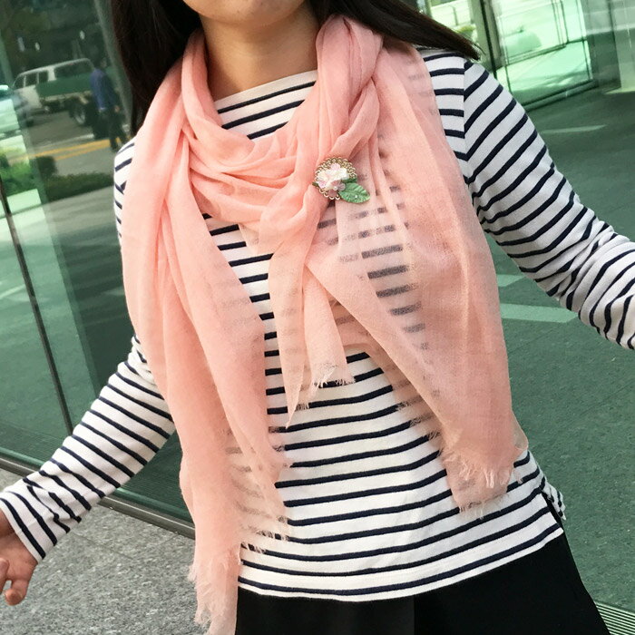 カラー 1 ピンク×ブルー 2 ベージュ×ブルー 3 パープル 4 ピンク 5 ローズピンク 6 ブラウン 商品説明 優しい肌触りのカシミヤショールと、可愛くも落ち着きのある花のショールピンのセットです。