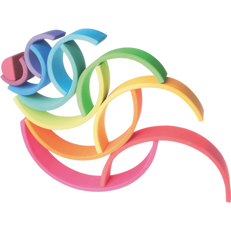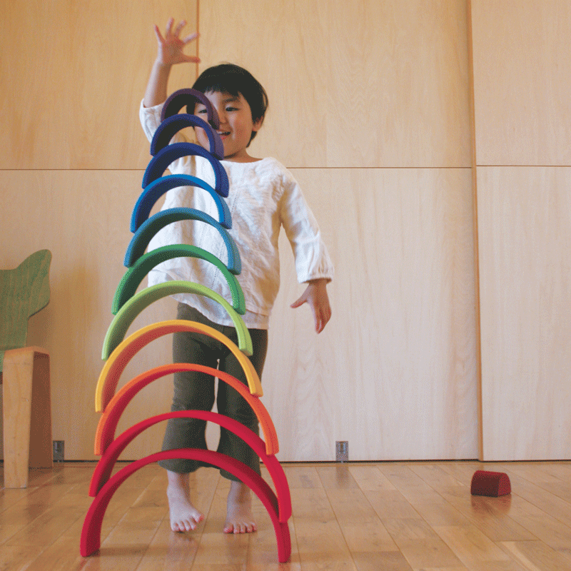 あたたかみのある木のインテリア トンネル型のレインボーウッド 虹色トンネルの積み木 特大