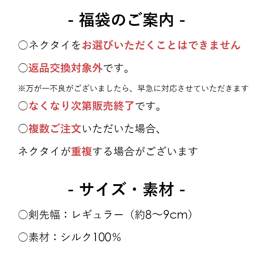 メーカーの協力によりシルク100%の上質なネクタイが数量限定の福袋にて販売!型番TIE-200X-A3-5SET商品情報柄おまかせ福袋(画像のようなテイストの柄をお届け^^♪