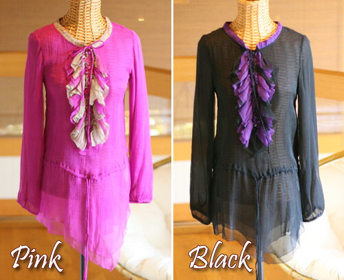 シルクシフォンフリル長袖ブラウス 上質のシルク楊柳をふんだんにつかったエアリーで上質の長袖ブラウス。