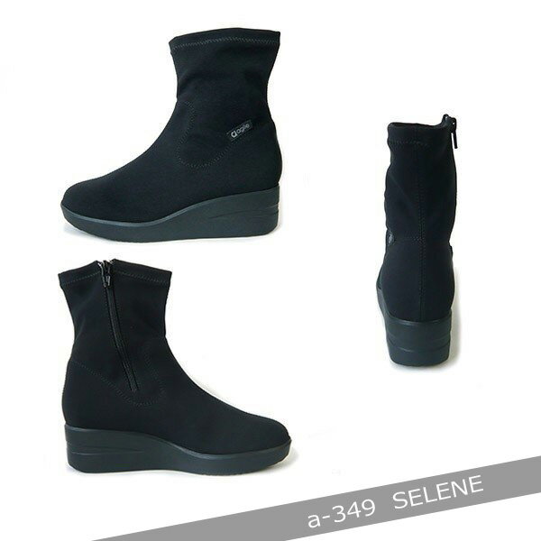 ) 今までと同じソール:ヒール約4.5cm 定番型 ショートブーツ ストレッチ ショートブーツ SELENE 黒agile-349BK ブラック ブーツストレッチ生地 3E サイドファスナー付き 【安心の 新作/定番品】 当店は、ルコライン アージレの中でも一番履き心地の良い定番型ハイカットシューズの 「新作・定番品」を常にお届けいたします。