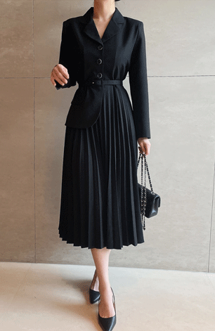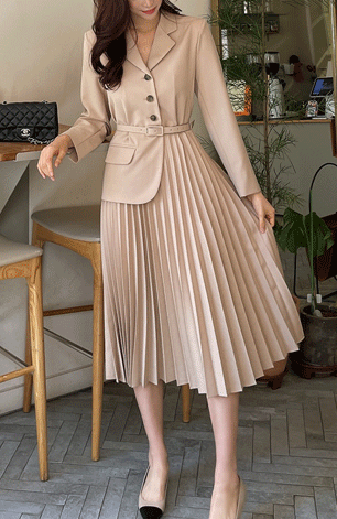 プリーツ ワンピース フォーマル ママ スーツ ドレス オフィス ジャケット風 ウエストゴム 結納 顔合わせ お宮参り 服装 母親 七五三 お出かけ デート レディース ロング丈 卒園式 卒業式 入学式 入園式 参観日 発表会 上品 おしゃれ 通勤 通学 服 OL 体型カバー