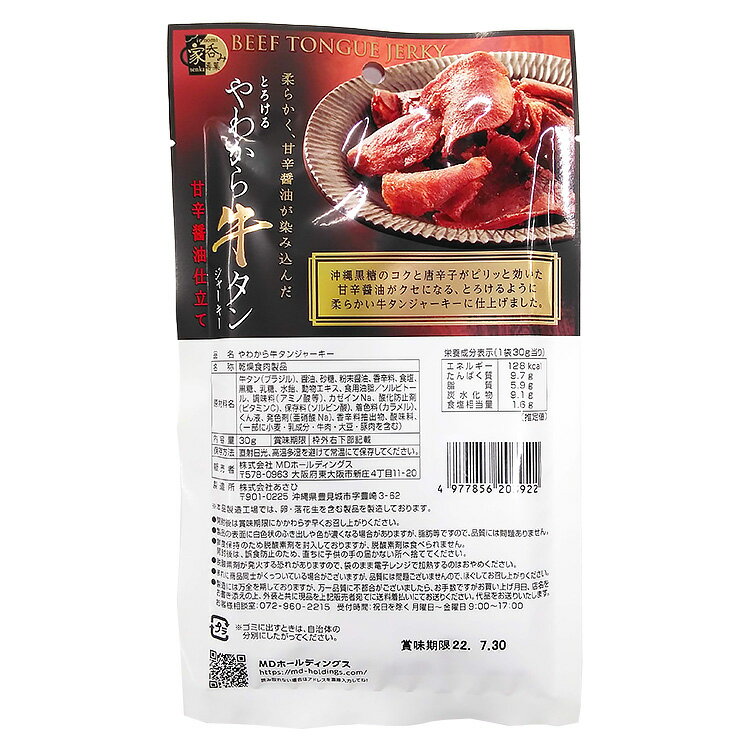 【やわから牛タンジャーキー】 沖縄黒糖のコクと唐辛子がピリッときいた甘辛醤油がクセになる、とろけるように柔らかい牛タンジャーキーです。