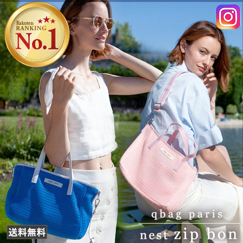 qbag paris nest ネスト bon ボン ショルダーバッグ ショルダーベルト 斜めがけ 肩掛け ジップ付き マザーズバッグ ママバッグ 軽量 大容量 通勤 通学 旅行 レディース メッシュバッグ 洗える ギフト プレゼント あす楽 送料無料