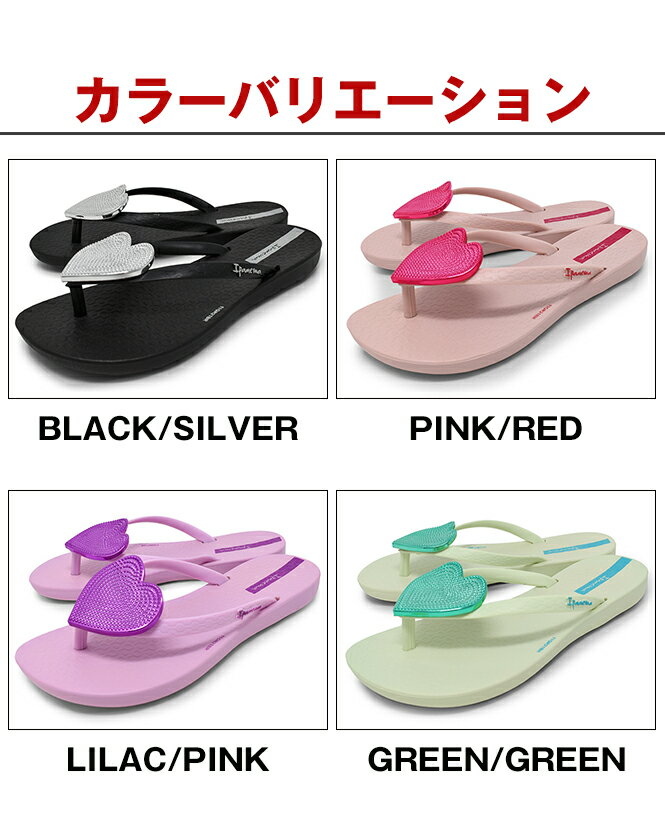 お得情報をメールマガジンにて無料配信中! ⇒登録はこちらブランド Ipanema イパネマ デザイン ハート ビーチサンダル ビーサン カラー BLACK / SILVER ( ブラック シルバー ) PINK / RED ( ピンク レッド ) GREEN / GREEN (グリーン グリーン ) LILAC / PINK (ライラック ピンク ) サイズ展開(cm) 27.28 ( 約 18.0cm ) / 29.30 ( 約 19.5cm ) / 31.32 ( 約 21.0cm ) / 33.34 ( 約 22.0cm ) 素材 PVC ( 塩化ビニール ) 商品説明 甲の大きなきらきらハートが可愛いビーチサンダル。
