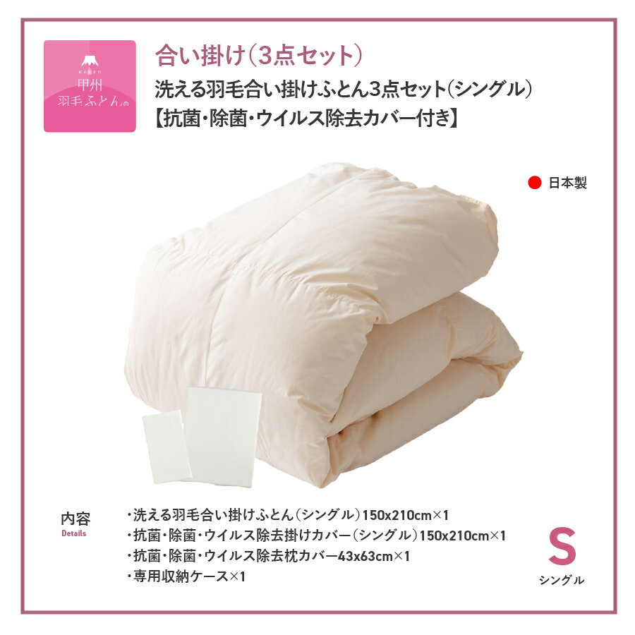 【ふるさと納税】 羽毛布団 シングル 日本製 合い掛け 抗菌 除菌 洗える 掛け布団 布団カバー 枕カバー 3点 セット 洗濯可 ウイルス対策 収納袋 寝具 ふとん カバー 国産 新生活 衣替え 【甲州羽毛ふとん】
