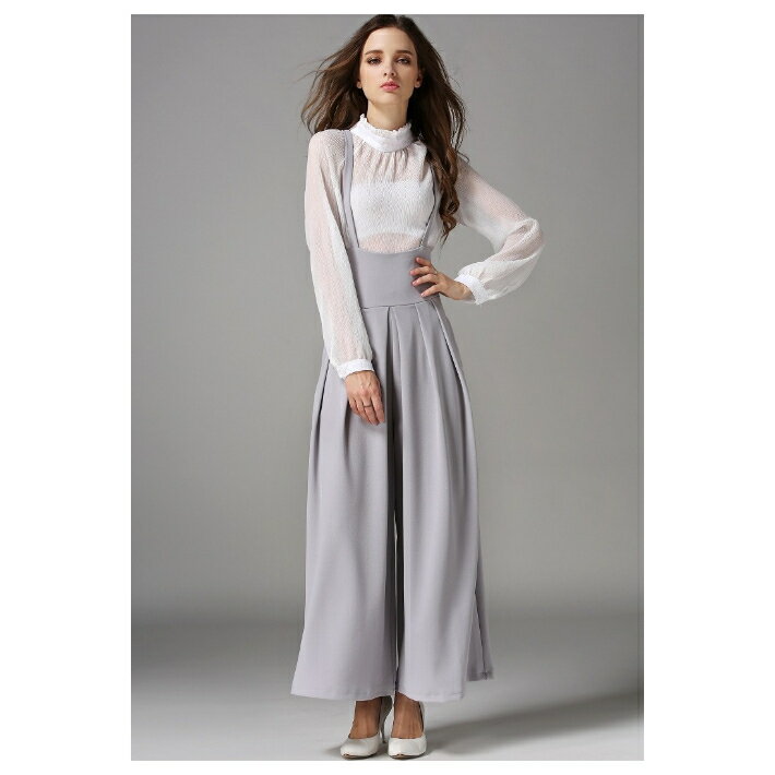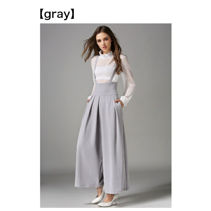 送料無料&即納★ バックゴム 切り替え タック サロペット パンツ 上品 カジュアル ゆったり ワイドパンツ / レディース ボトムス ふんわり ジャンパースカート ロング オフィスカジュアル 清楚 きれいめ ハイウエスト 大人可愛い 秋 春夏 白 黒 ベージュ ホワイト ブラック