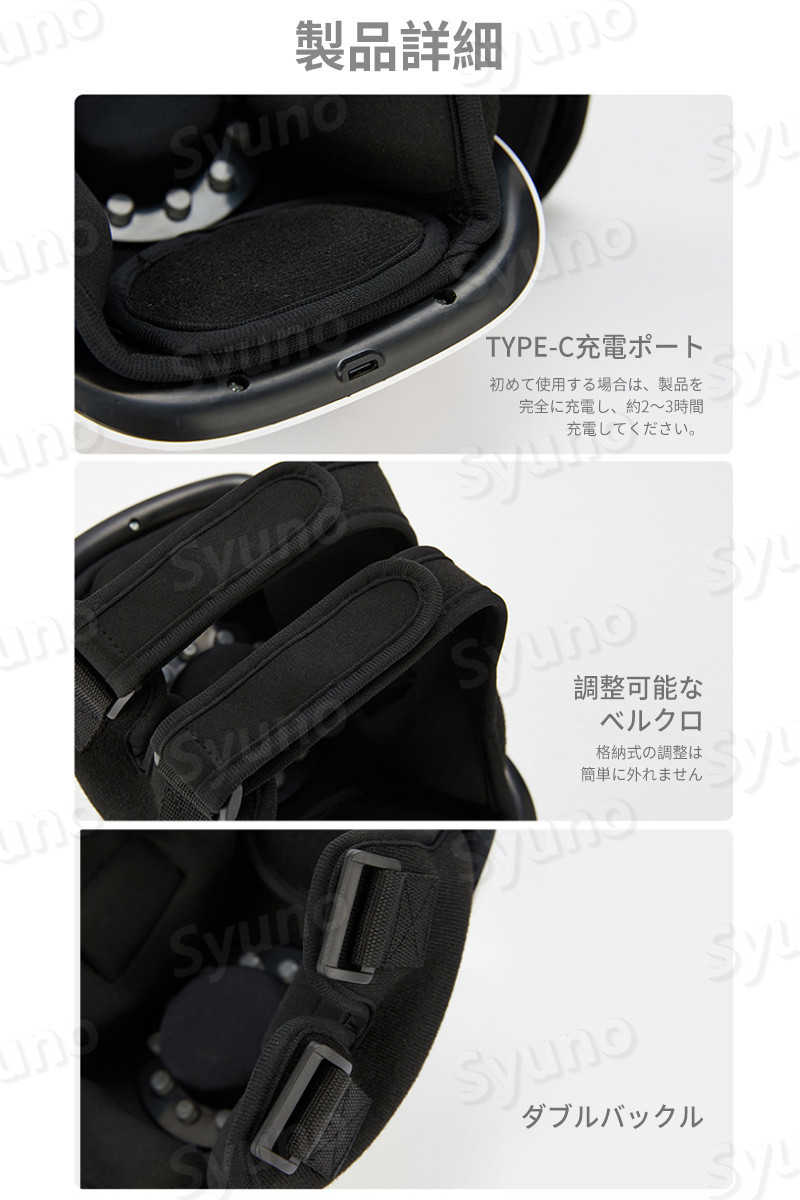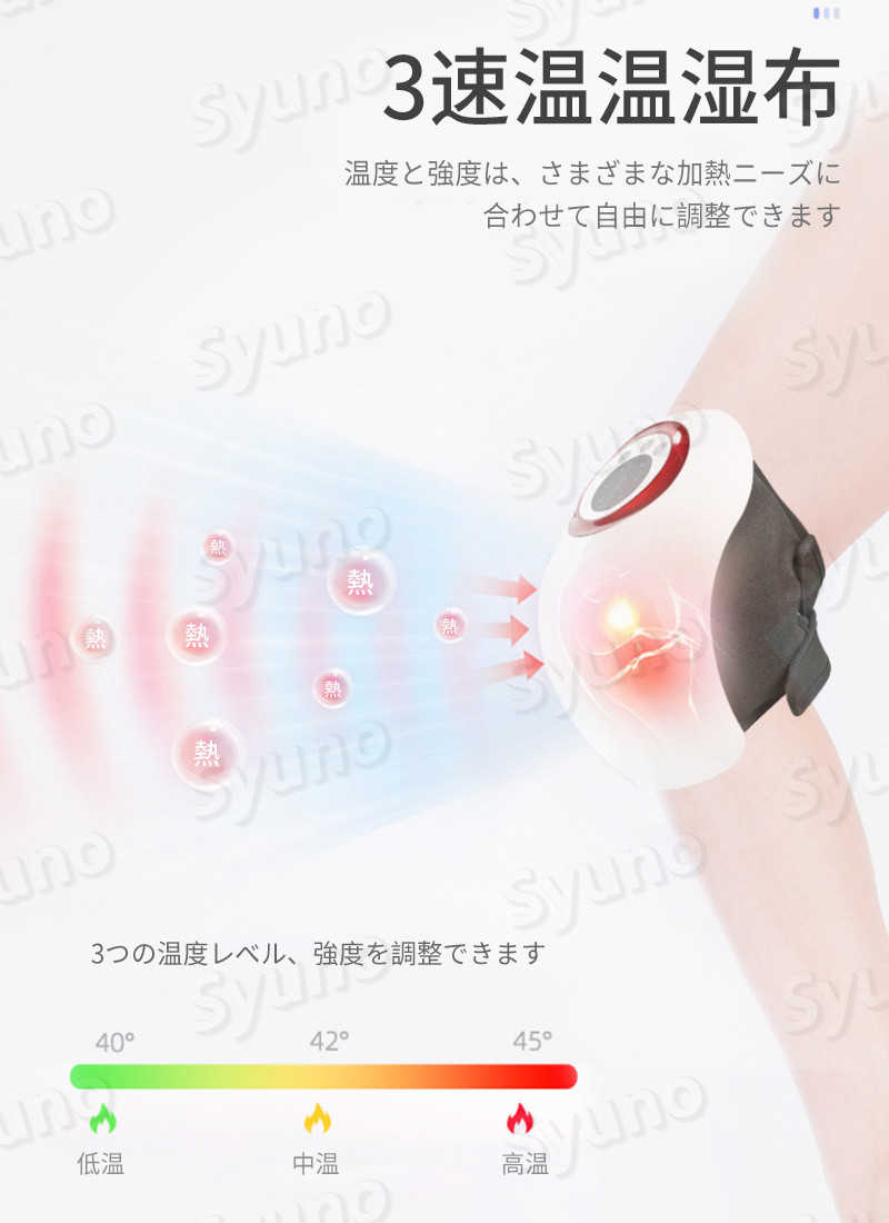 製品名:膝マッサージ器 商品色:オプション3色(青、赤、グレー) 定格電圧:5V 電池容量:2000mAh 航続時間:3時間 商品サイズ:210 * 140mm 原産国:中国