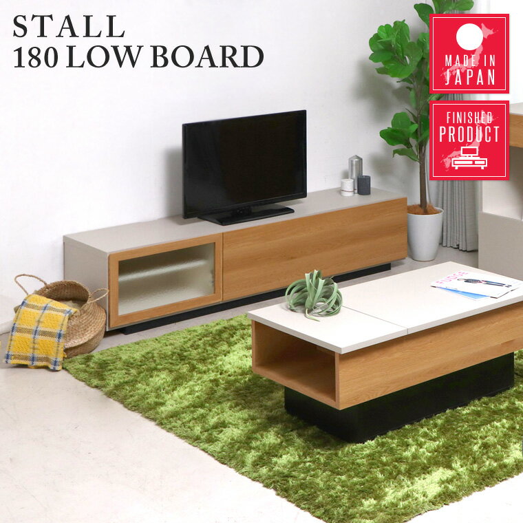 テレビ台 テレビボード TV台 TVボード ローボード 幅180cm 大型テレビ対応 日本製 完成品 おしゃれ 北欧 モダン オフホワイト 白 ナチュラル 木製 木目調 ガラス扉 AVボード AV機器収納 大容量収納 エコ素材 ストール 180ローボード