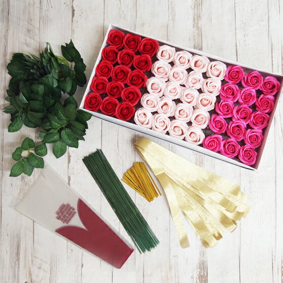 ソープフラワー 1輪ブーケキット 50本 手作りキット ローズ 材料 花材 ウエディング 結婚式 入学式 ハンドメイド フラワーサーブ 手作り 造花 ウエルカムボード プチギフト 自作 花