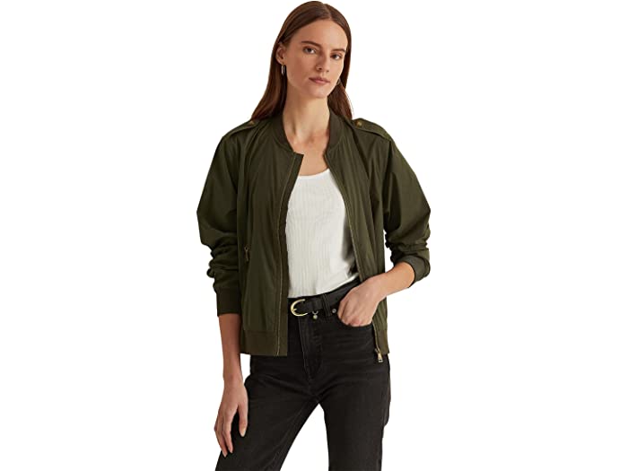 (取寄) ローレン ラルフローレン レディース プラス サイズ ボンバー ジャケット LAUREN Ralph Lauren women Plus Size Bomber Jacket Dark Tropical Olive