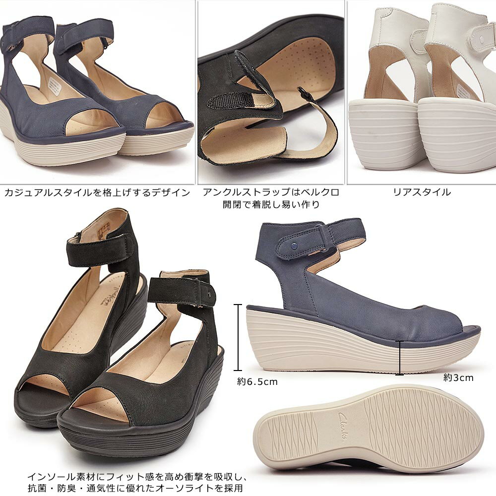 ヒールの高さ:約6.5cm(プラットフォームの高さ約3cm)重量:約340g(片足・サイズUK4.5で計測)生産国:ベトナムブーツサンダル アンクルストラップClarks Reedly Willow【smtb-TK】 23.5cmでピッタリですが、アンクルストラップは緩く感じます。