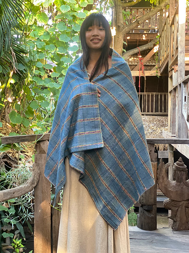 オーガニック コットン100% 手織り手紡ぎ 草木染め MIX ボーダー 大判ショール【送料無料】 エスニック アジアンファッション リゾートコーデ