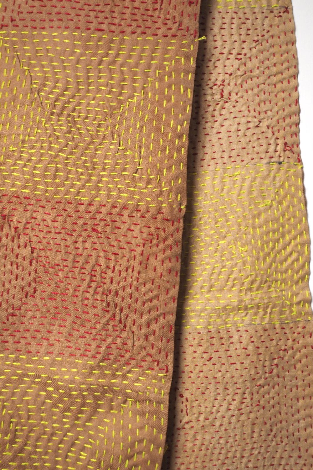 少し古いサリーのシルク生地を2枚重ね、全面にびっしりと、とても細かい刺し子が施されています☆