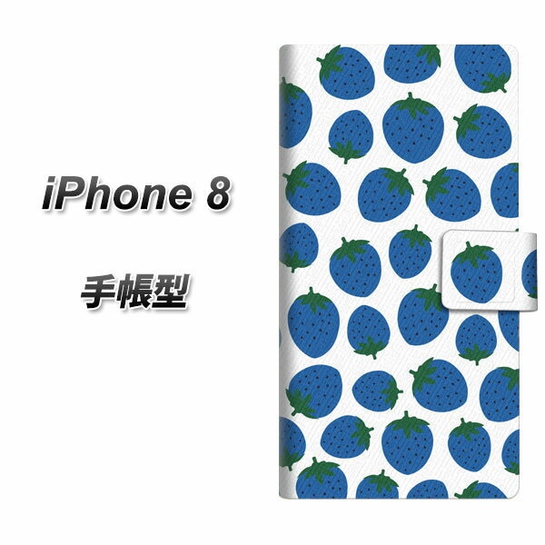 iPhone8 手帳型スマホケース【SC810 小さいイチゴ模様 ブルー】(アイフォン8/IPHONE8/スマホケース/手帳式)