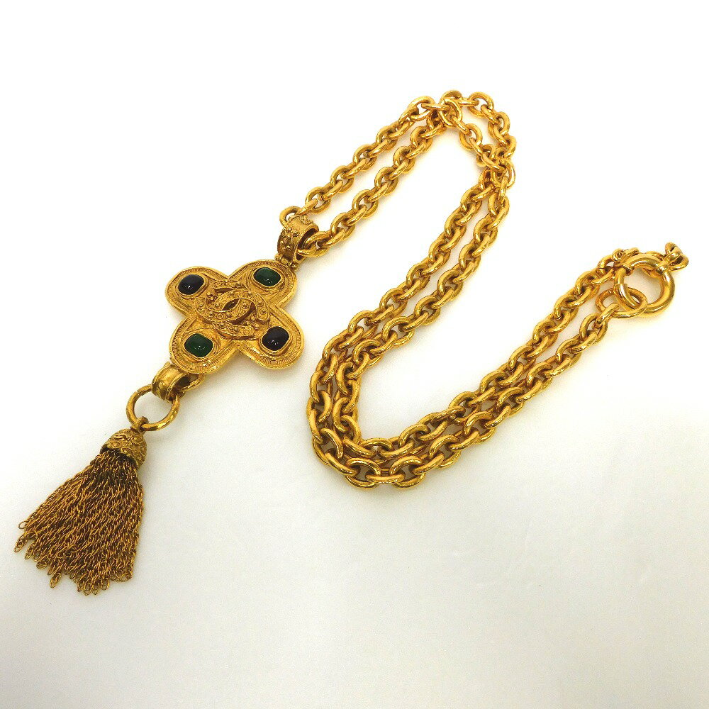 シャネル ネックレス カラーストーン クロス ロング ネックレス ヴィンテージ 94A ゴールド【質みなみ・太宰府店】【質屋】 CHANEL 【中古】 Dz763345